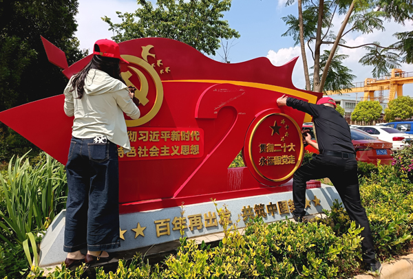 根據活動安排,勞動任務明確分工,按地域劃分為幾個板塊進行。在公司新區,十余名黨員在黨群工作部的現場分配下,負責擦拭黨建文化長廊的雕塑。大家拿著抹布,相互配合,仔細清理雕塑上的灰塵,讓每一處細節都煥發光彩,使黨建文化長廊更顯整潔莊重。