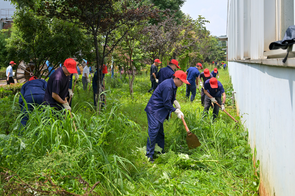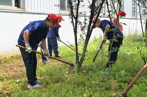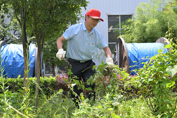 他們頂著夏日的炎熱,手持工具彎腰除草,不放過任何一處雜草叢生的角落,用汗水為廠區的綠化環境“減負”,讓綠化帶重現生機與美觀。